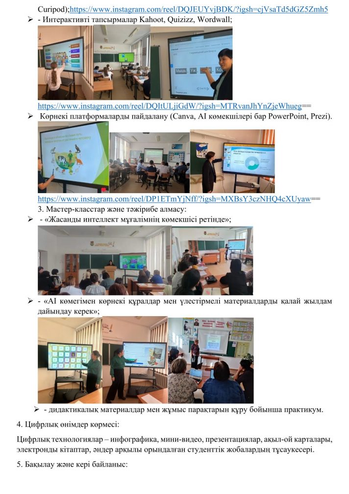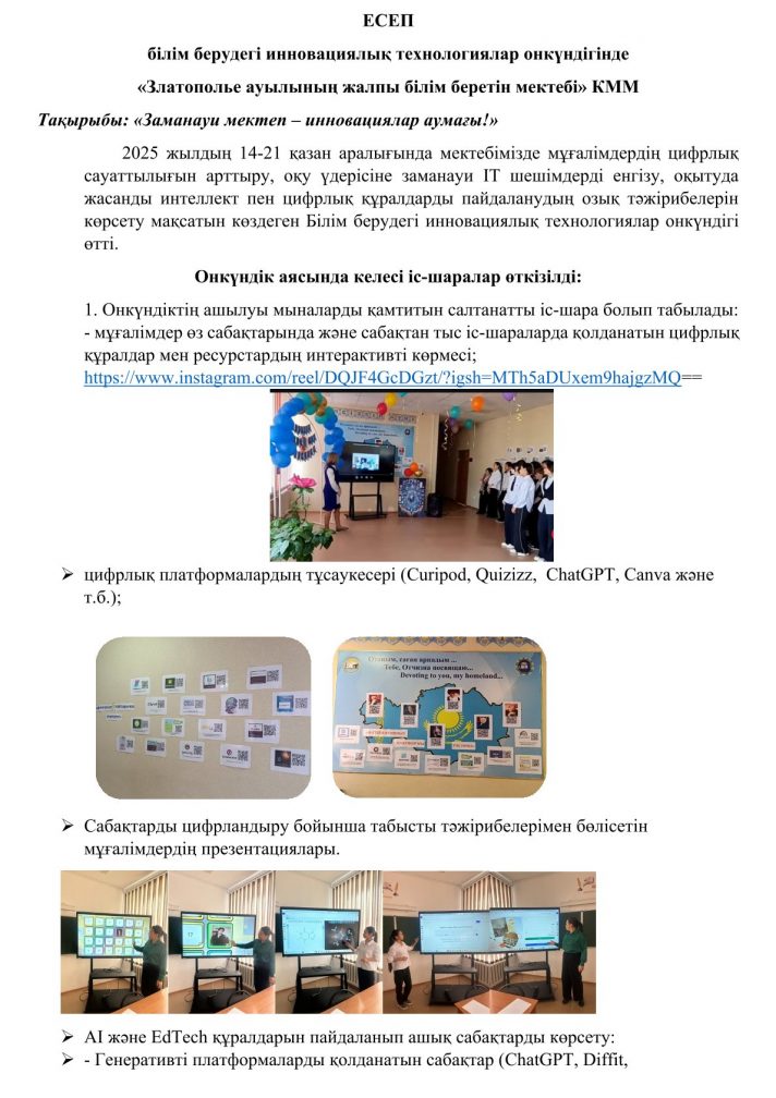 Білім беру саласындағы инновациялық технологиялар онкүндігін өткізу туралы есеп