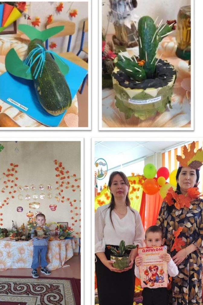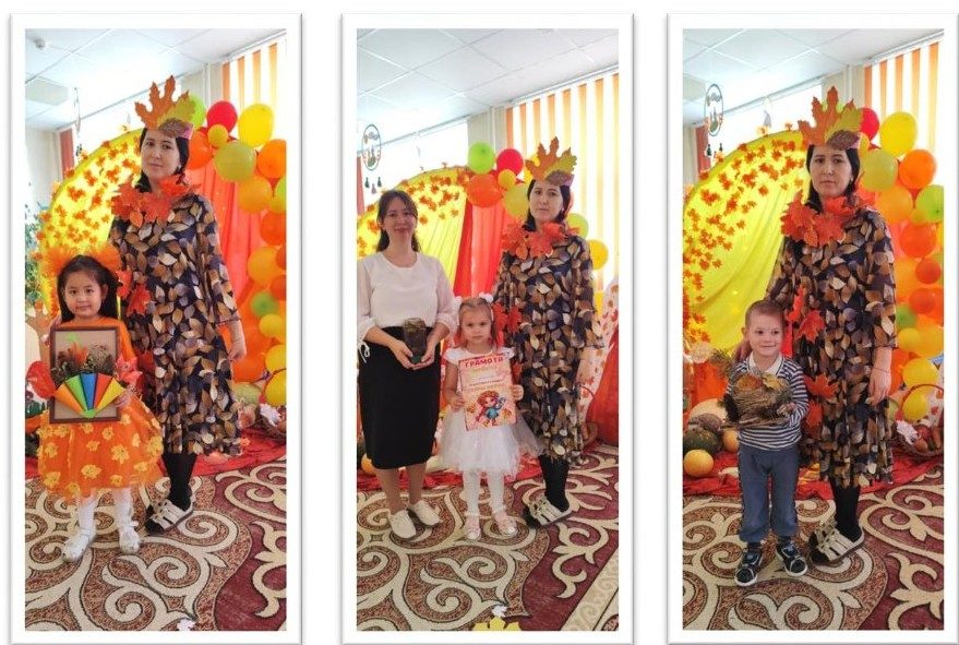 «Гүлдер» тобында табиғи материалдан жасалған «Күзгі сыйлықтар» көрмесі өтті. Ата-аналар балалармен бірге тамаша бұйымдар жасады: көңілді жануарлар, әдемі Күз, күзгі композициялар, оларды нағыз өнер туындылары деп атауға болады. Бірде-бір жұмыс қайталанбайды. Көрменің барлық экспонаттары - біздің топтардың интерьерінің керемет әшекейіне айналды. Әрбір жұмыста әрбір отбасының шығармашылық даралығы мен қиялы байқалады. Барлық жұмыстар бірегей, қайталанбас және қызықты. Жұмыстар балаларға арналған грамоталармен және ата-аналарға арналған алғыс хаттармен марапатталды!
