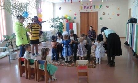 «Праздник 8 марта!» - праздник весны, праздник мам и бабушек прошел в первой младшей группе, в мини-центре «Карлыгаш». Для самых маленьких малышей - это был первый весенний, теплый, особенный праздник. Зал был украшен шарами, цветами это все придавало хорошее настроение родителям, бабушкам и детям. Была заранее подготовлена праздничная программа, дети танцевали, рассказывали стихотворения для мам, играли игры с родителями. В честь праздника дети подарили родителям и бабушкам праздничные подделки-цветы, а все девочки получили подарки. К концу утренника все дети были приглашены на чаепития.